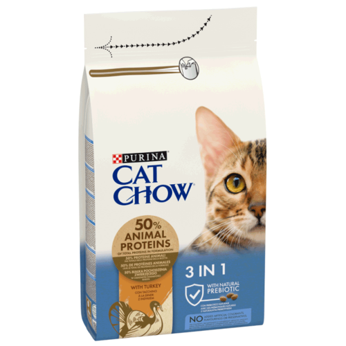 Сухий повнораціонний корм для дорослих котів з формулою потрійної дії, з індичкою Cat Chow Feline 3in1 1,5 кг