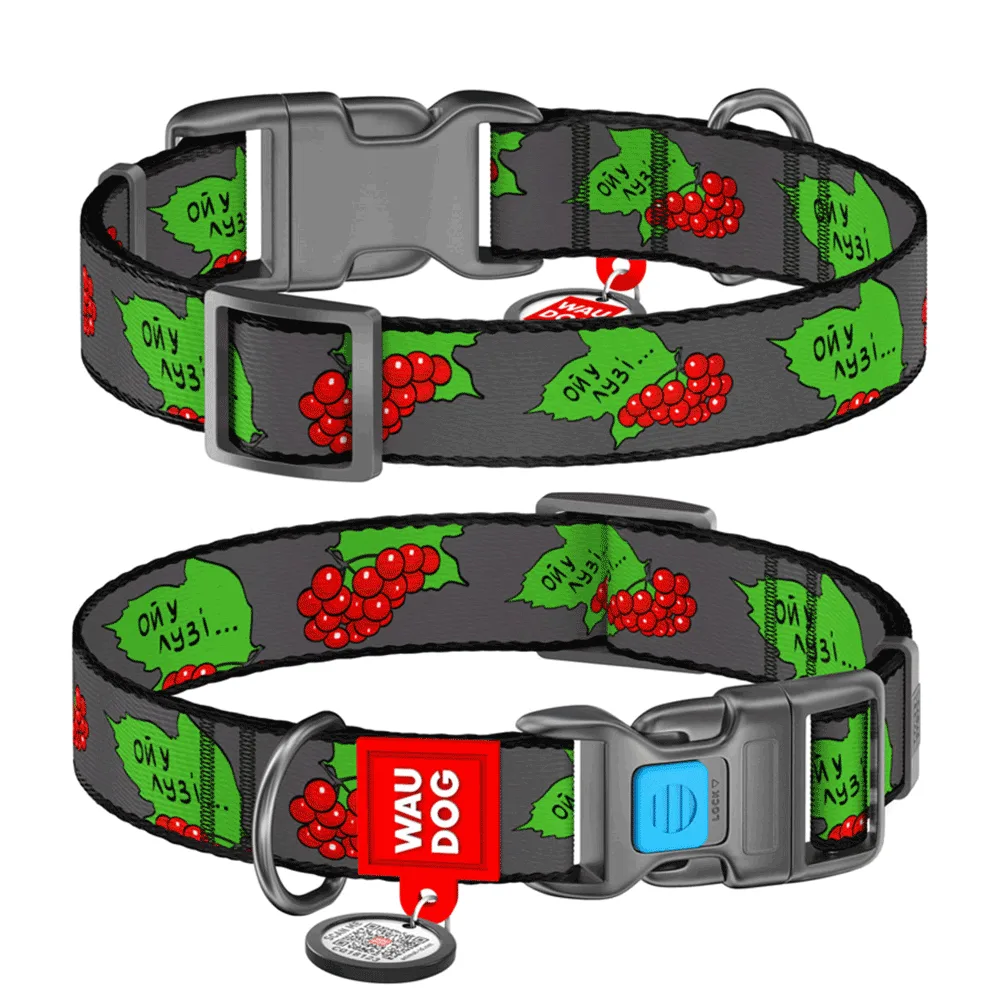 Collar WAUDOG Nylon Нашийник з QR-паспортом Калина для собак, пластиковий фастекс, S 25-35 см/15 мм