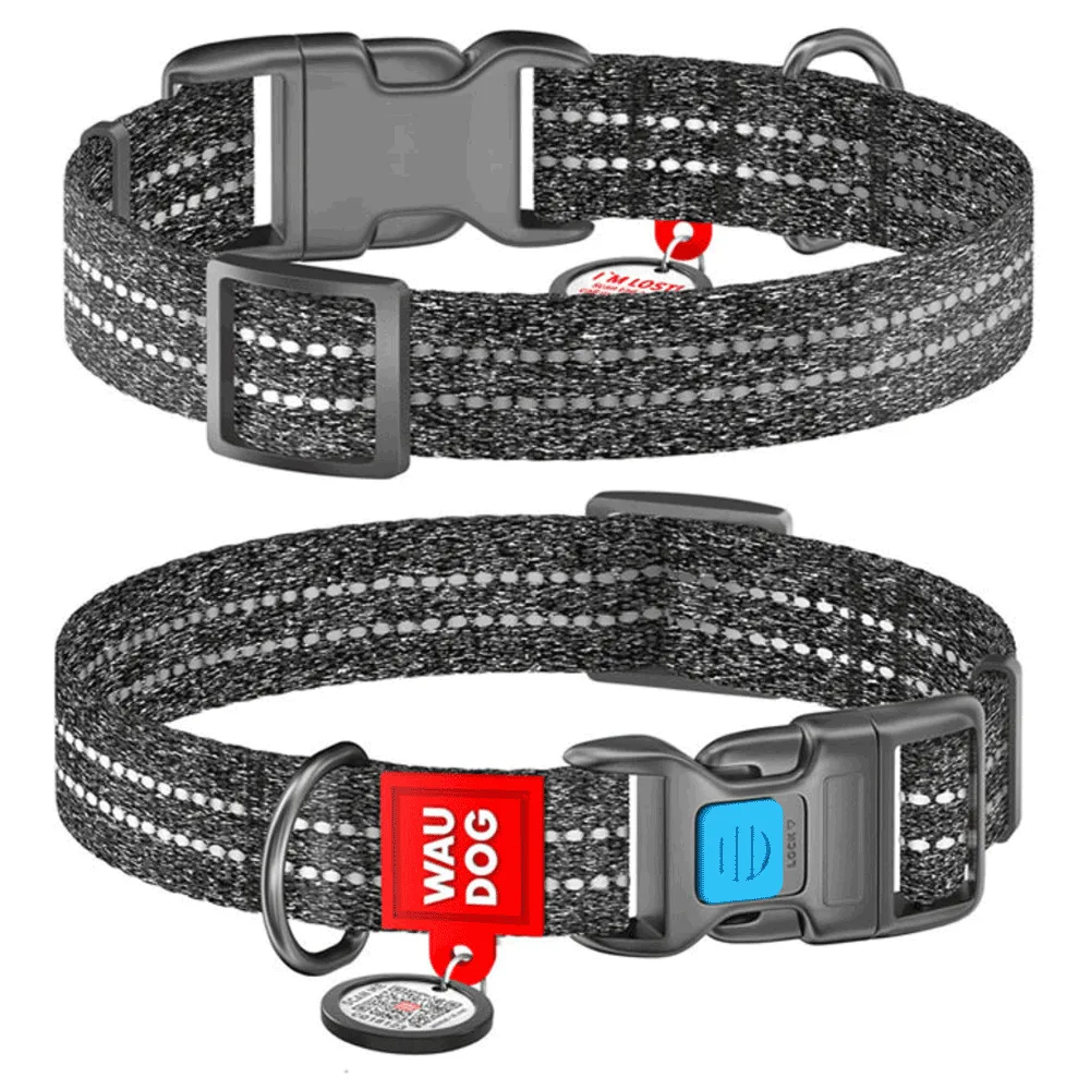 Collar WAUDOG Re-cotton Нашийник з QR паспортом, світловідбивна стрічка, пластиковий фастекс, 28-40 см/20 мм (бавовна, сірий)