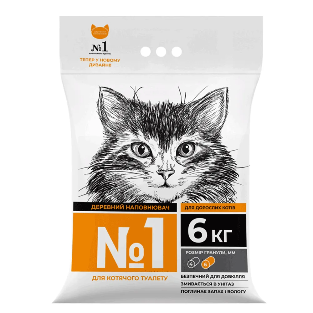 Деревний наповнювач №1 для котячого туалету, темна гранула 6 мм, 6 кг