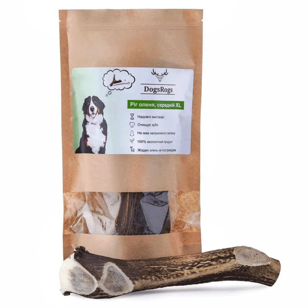 DogsRogs Ріг оленя для собак великих порід, середньої твердості, розмір ХL 30 см