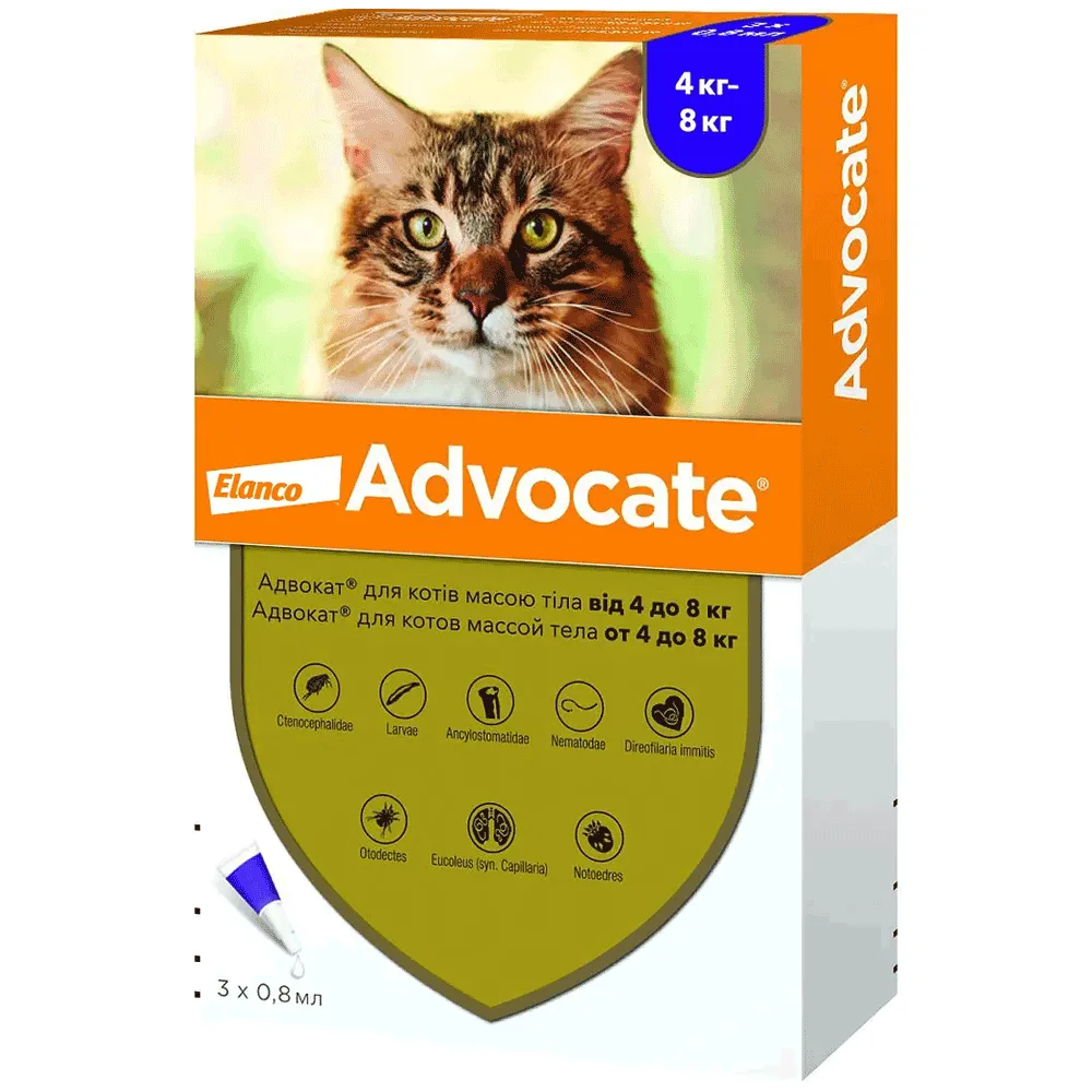 Elanco Advocate Протипаразитарні краплі на холку для котів від 4 до 8 кг, 1 піпетка