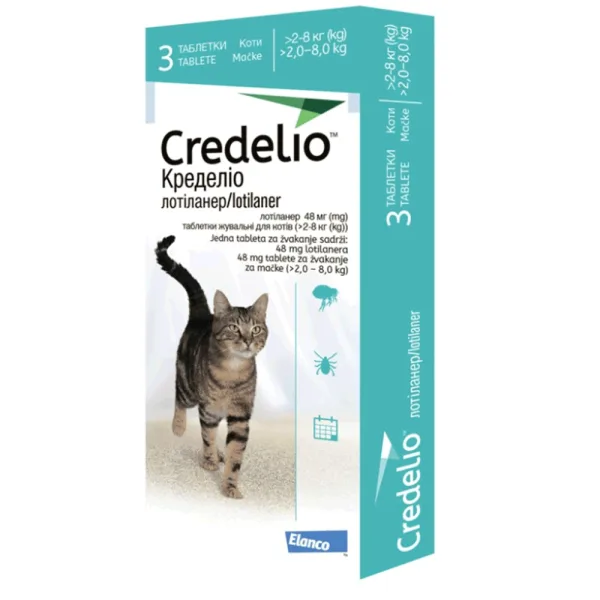 - Безпека Credelio Cat не встановлена у вагітних і годуючих кішок.