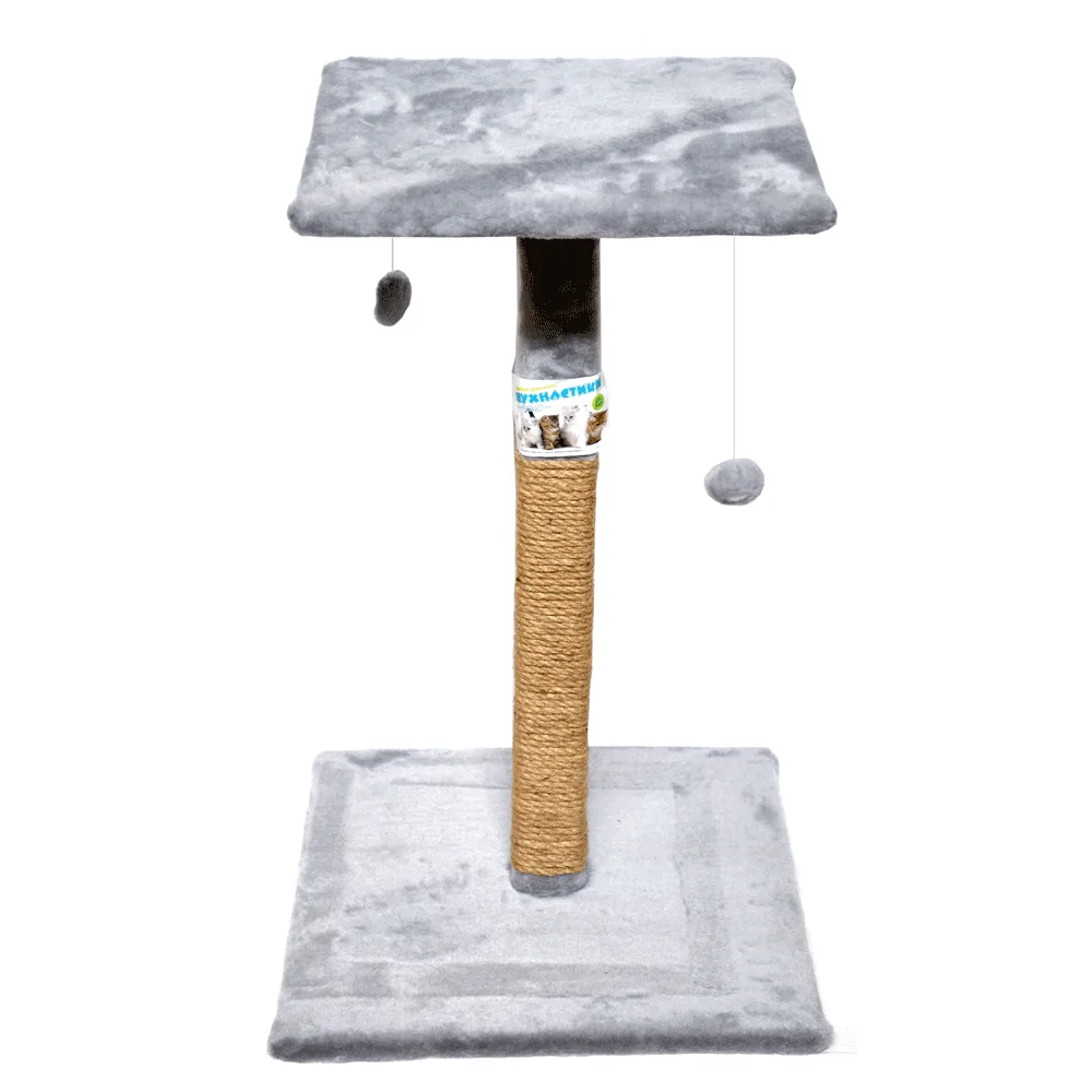 Кігтеточка Пухнастики великий стовпчик з полицею Сіра 75х45 см