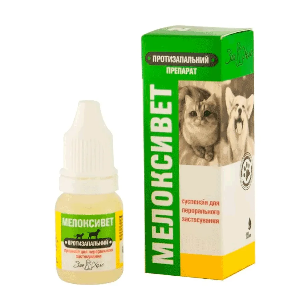 Мелоксивет суспензію призначають собакам і котам як протизапальний, жарознижуючий і болезаспокійливий препарат при запальних і больових синдромах різного походження, включаючи гострі та хронічні захворювання опорно-рухового апарату (артрити, артрози, синовіти, вивихи), запальні захворювання м'яких тканин, а також в якості анальгезуючого і протизапального препарату в післяопераційний період.