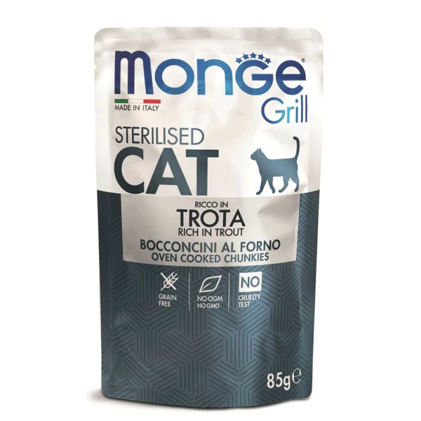 Вологий корм для стерилізованих кішок Monge Cat Grill Sterilised 85 г (форель в желе)