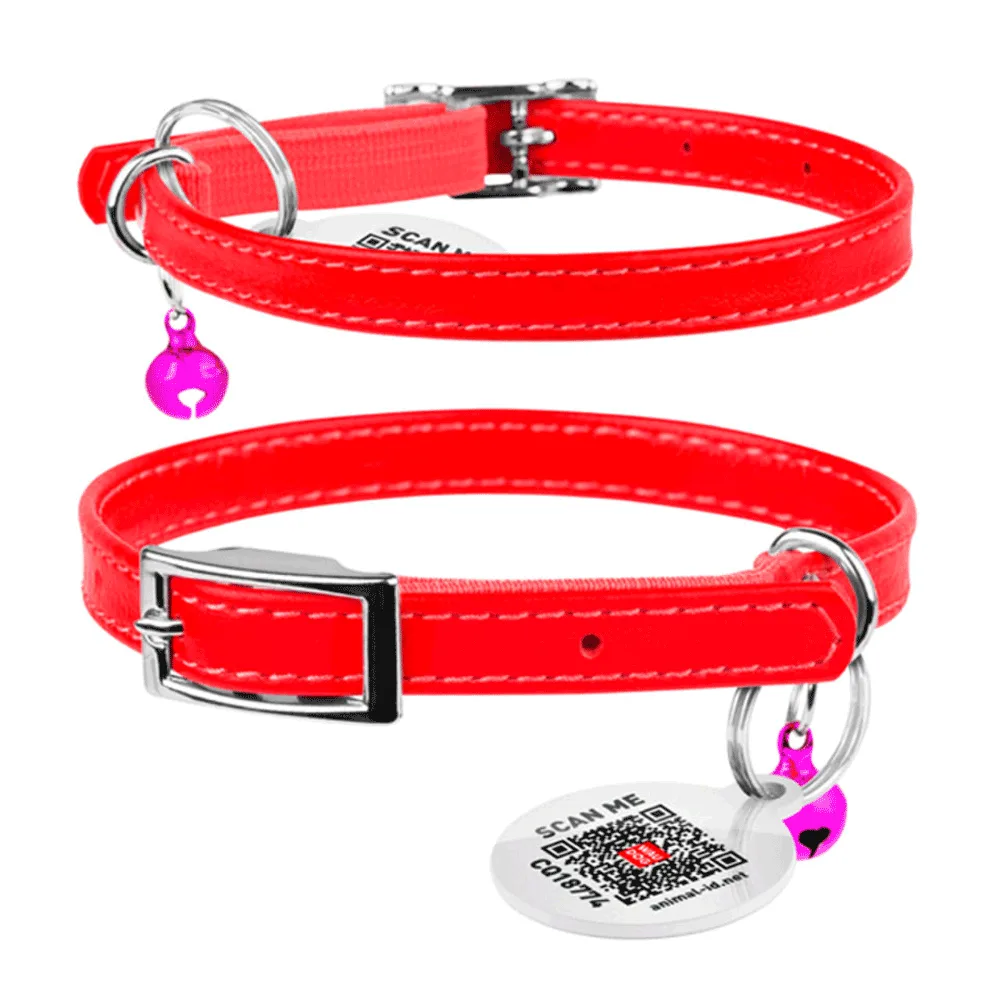 Нашийник для котів шкіряний WAUDOG Glamour з QR паспортом 22-30 см/9 мм, червоний