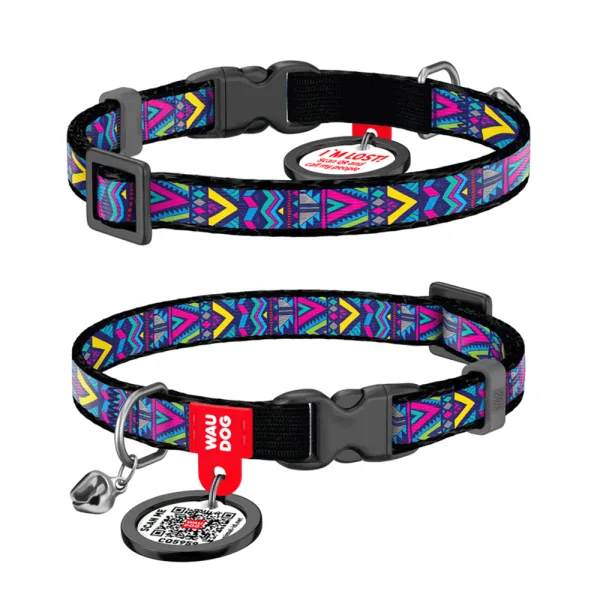 Нашийник для котів нейлоновий WAUDOG Nylon з QR паспортом, малюнок Інді, пластиковий фастекс, XS 20-30 см/10 мм
