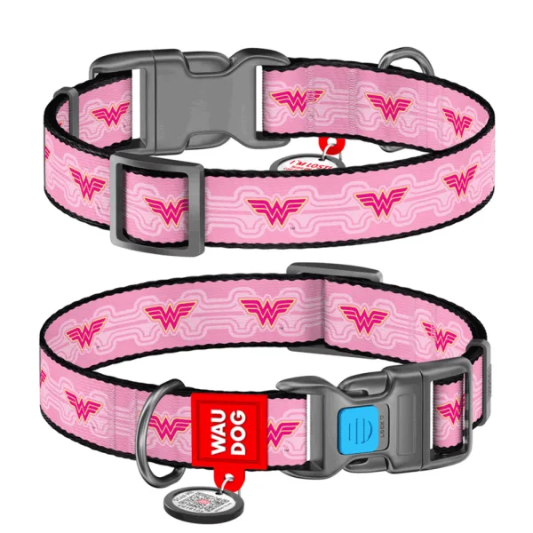 Нашийник для собак нейлоновий з QR паспортом WAUDOG Чудо-жінка 1 25-35 см/15 мм