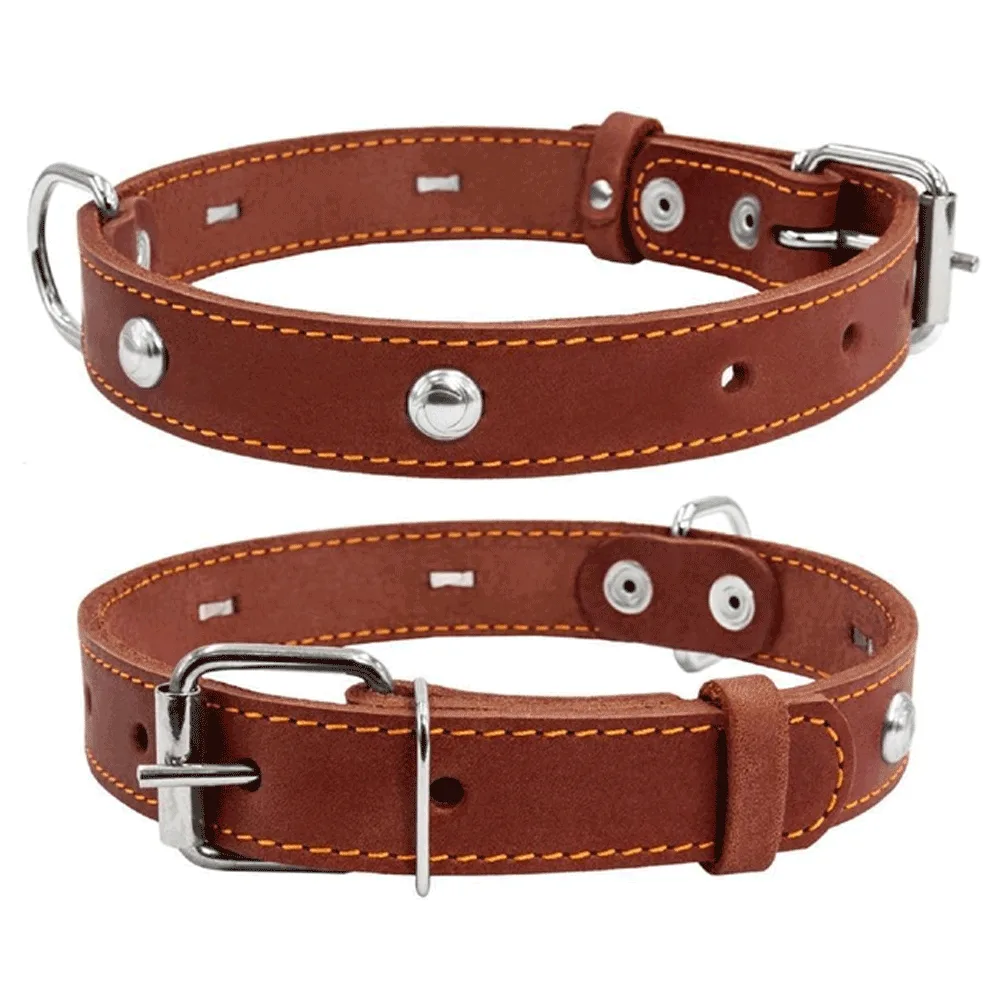 Нашийник для собак шкіряний Collar одинарний з прикрасами 32-40см/20мм (коричневий)