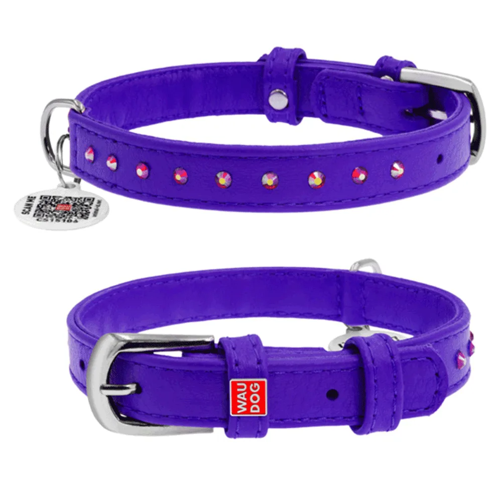 Нашийник для собак шкіряний WAUDOG Glamour з QR паспортом стрази 27-36 см/15 мм (фіолетовий)