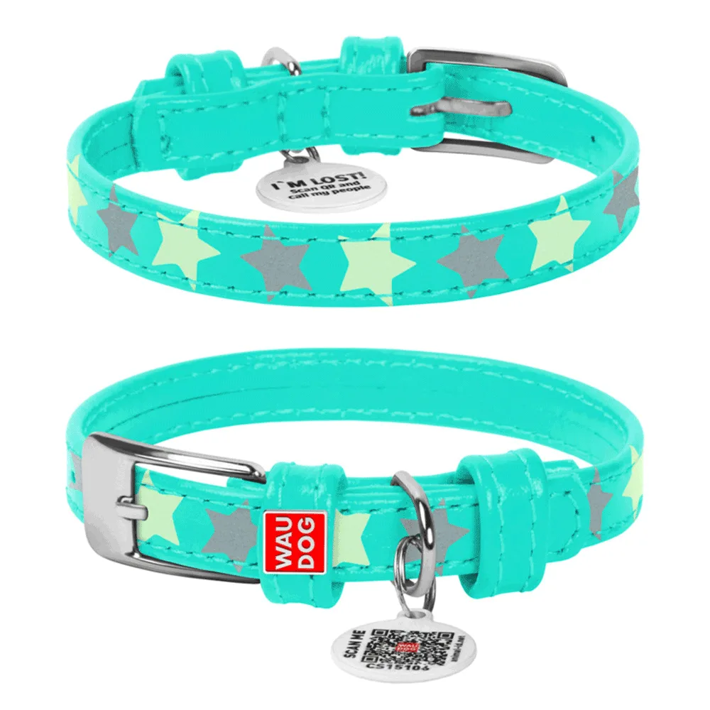 Нашийник для собак шкіряний WAUDOG Glamour з QR паспортом Зірочка світонакоплювальний 21-29 см/12 мм