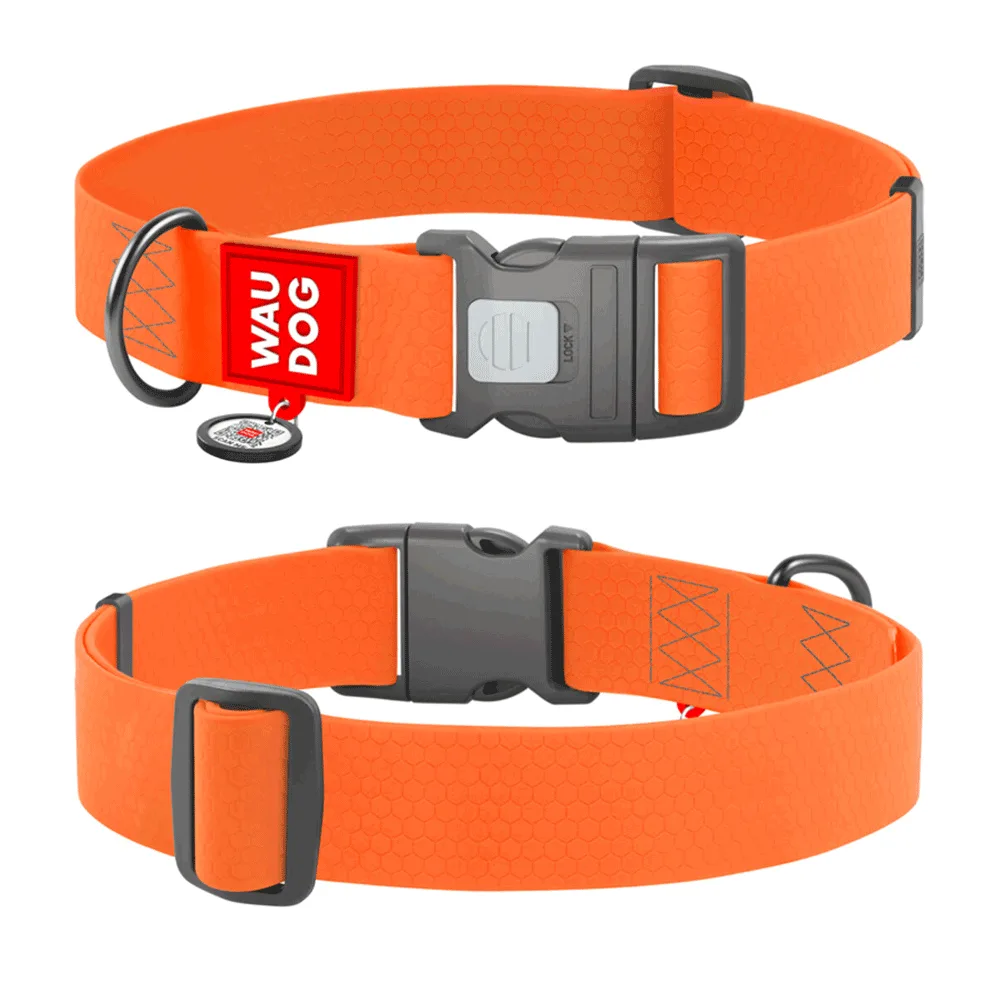 Нашийник для собак WAUDOG Waterproof з QR паспортом пластикова пряжка-фастекс 46-70 см/40 мм (помаранчевий)