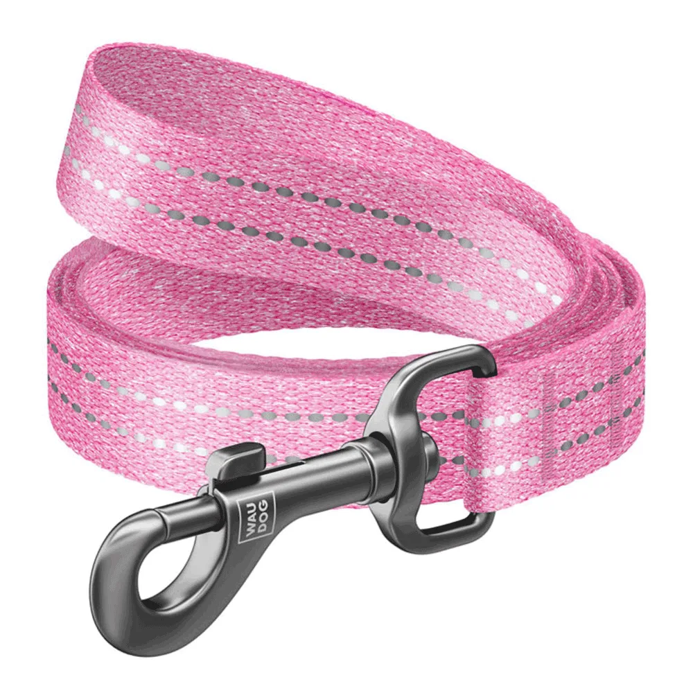Повідець для собак WAUDOG Re-cotton з відновленої бавовни, світловідбиваючий S 15 мм/150 см, рожевий