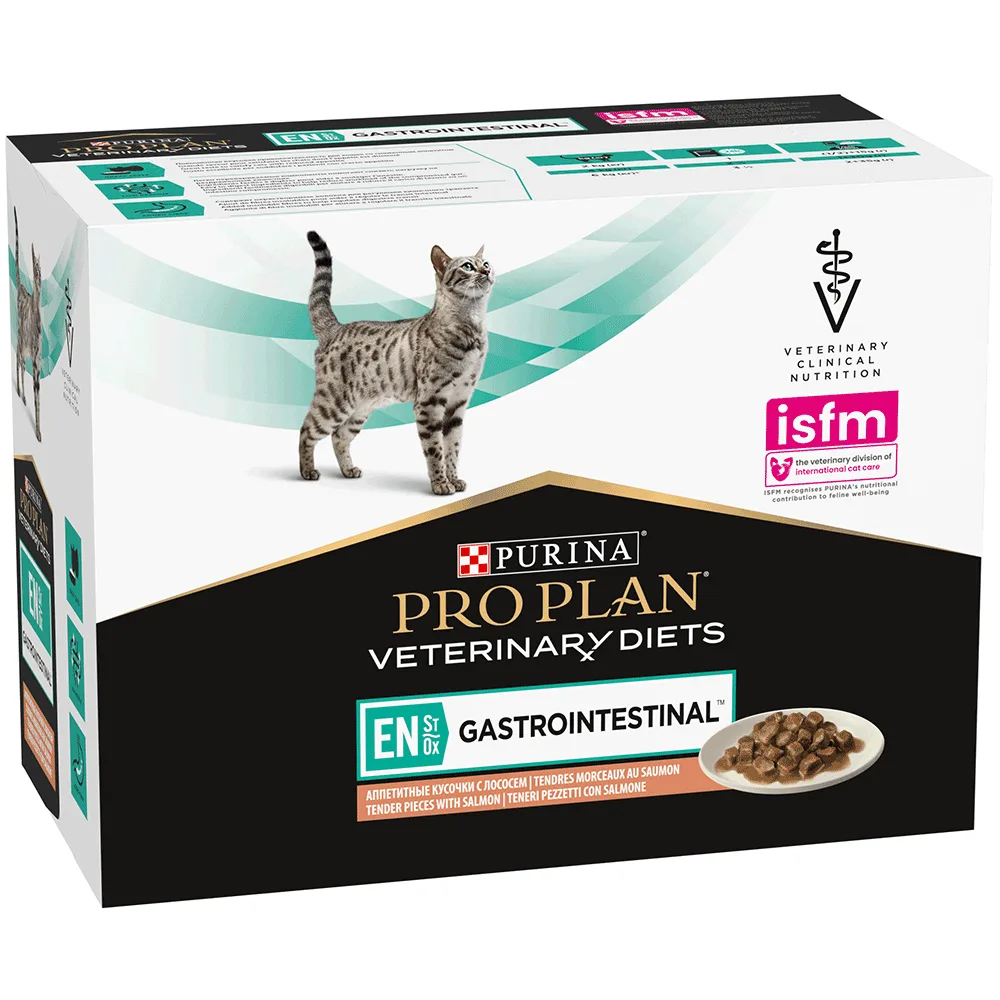 Вологий корм для котів Purina Pro Plan Veterinary Diets EN Gastrointestinal Шматочки в підливці з лососем 10 шт.*85 г