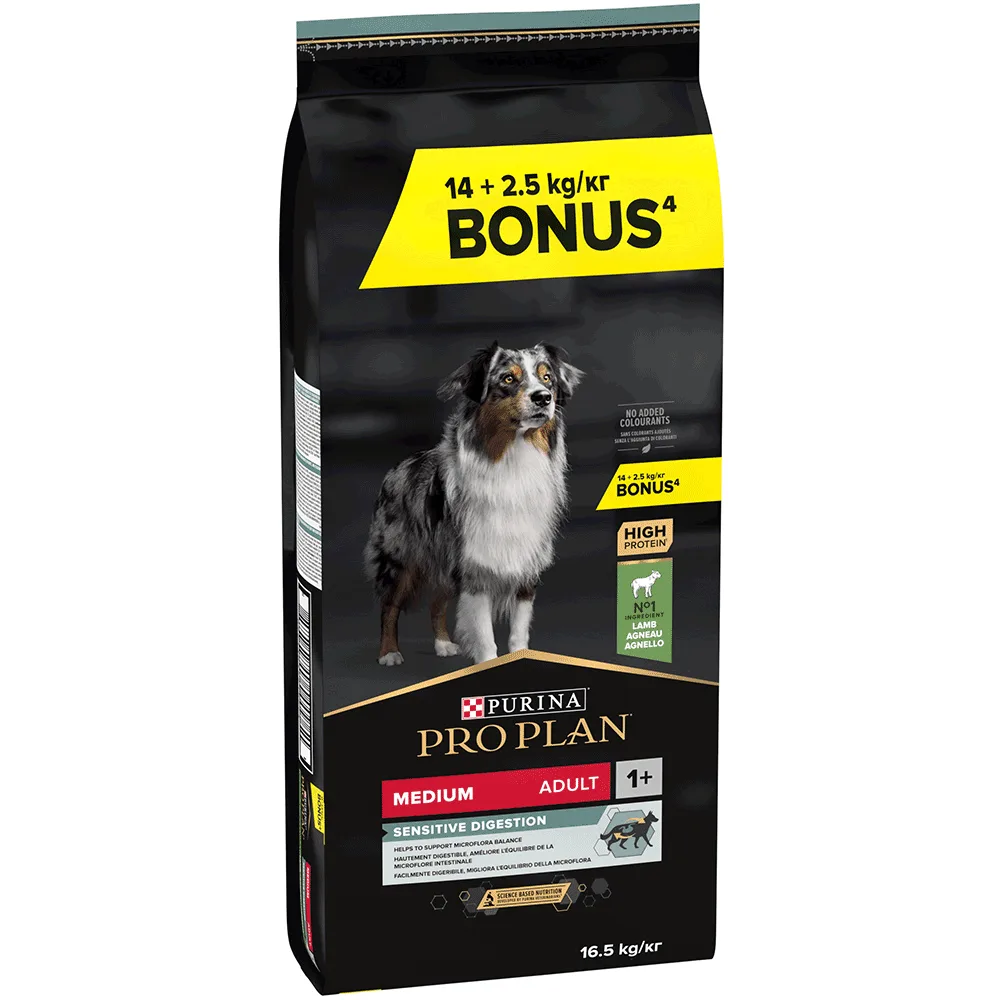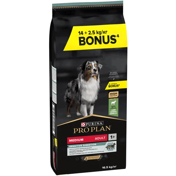 Сухий корм PRO PLAN Medium Adult 1+ Sensitive Digestion для дорослих собак з чутливим травленням, з ягням, 14+2,5 кг