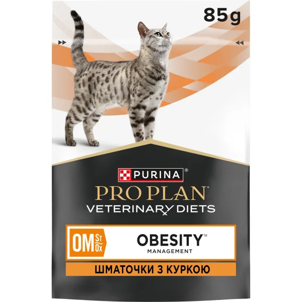Вологий дієтичний корм PRO PLAN VETERINARY DIETS OM Obesity Management St/Ox для дорослих котів для зниження надмірної маси тіла, з куркою, 85г