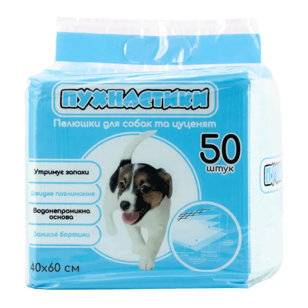 Пелюшки для собак одноразові Пухнастики, 60 х 40 см 50 шт.