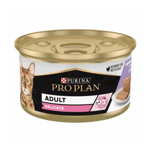 Вологий порційний повнораціонний корм для дорослих котів з чутливим травленням, мус з індичкою Pro Plan Delicate Adult 85 г