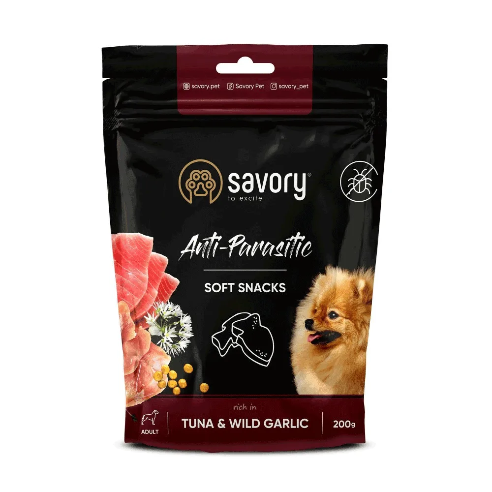 Savory М'які ласощі для собак з антипаразитарним ефектом, тунець та дикий часник, 200 г