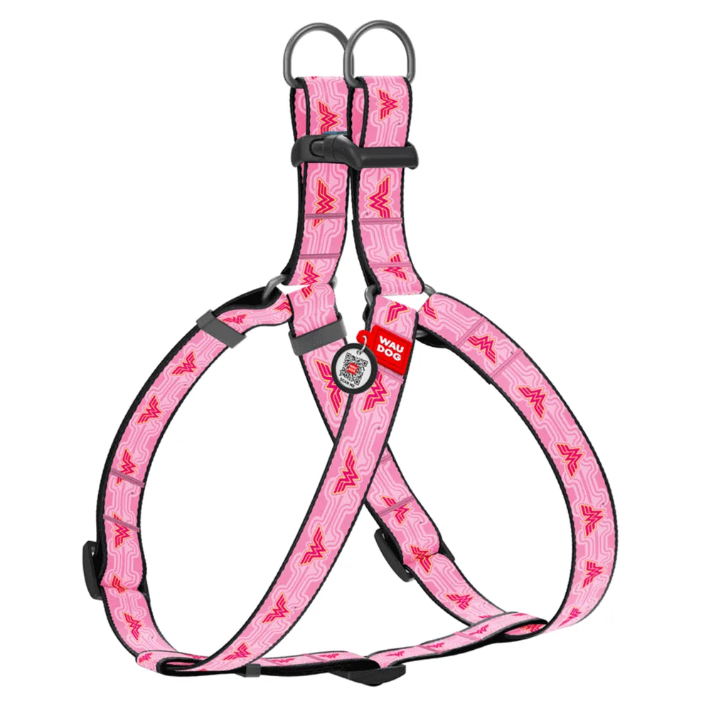 Шлея для собак WAUDOG Nylon з QR паспортом, малюнок Чудо-жінка 1 XS-S 40-55 см/15 мм