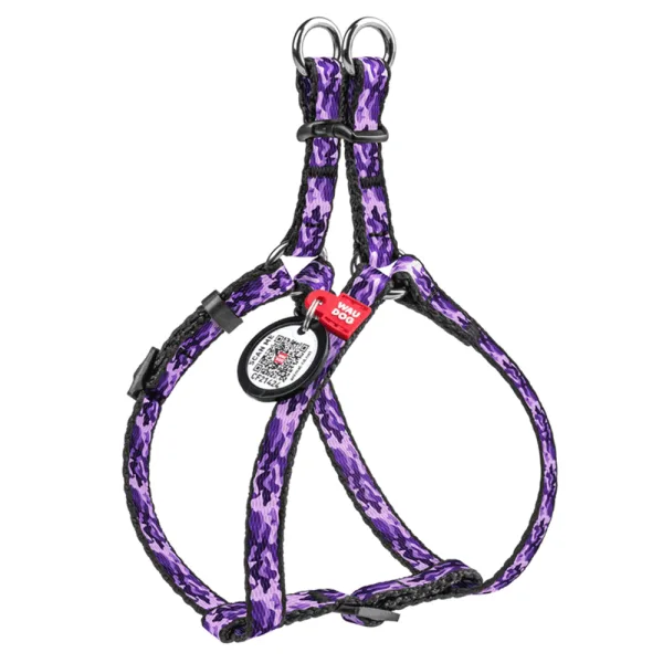 Шлея анатомічна H-подібна WAUDOG Nylon з QR-паспортом Фіолетовий камо 28-40см/10 мм