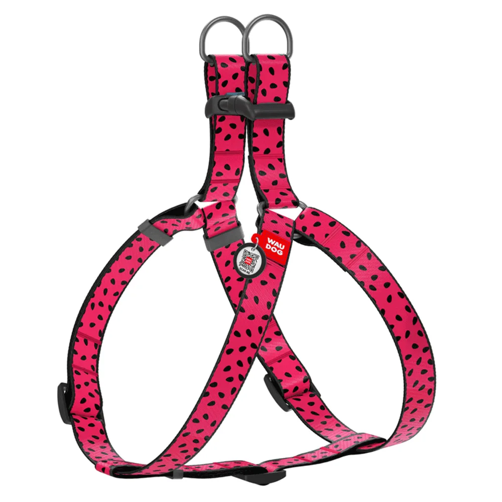 Шлея для собак WAUDOG Nylon з QR паспортом, малюнок Кавун XS-S 40-55 см/15 мм