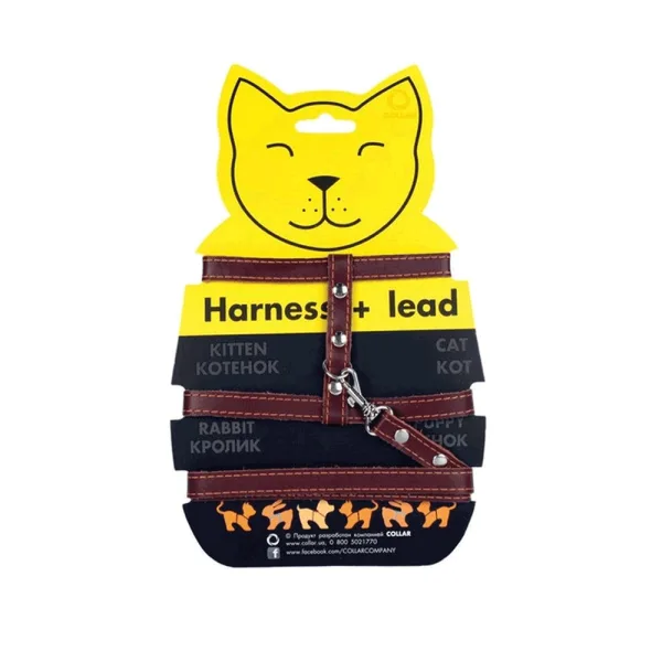 Шлея Collar з повідцем шкіряна на планшеті для котів А:22-30см В:30-40см Д 122см/12мм (коричневий)