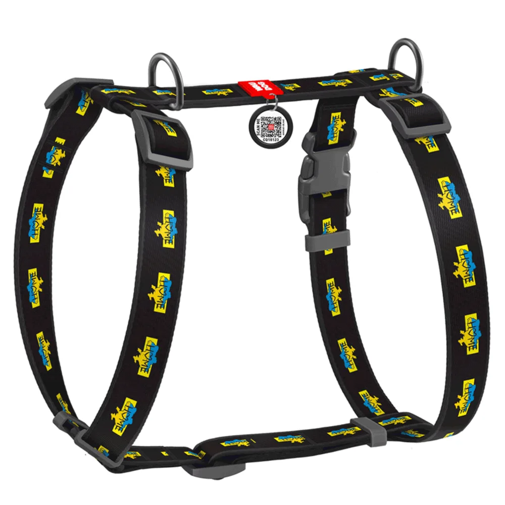 Шлея для собак анатомічна H-подібна WAUDOG Nylon з QR паспортом, малюнок Дім, М А 40-70 см, В 50-80 см, ширина 20 мм