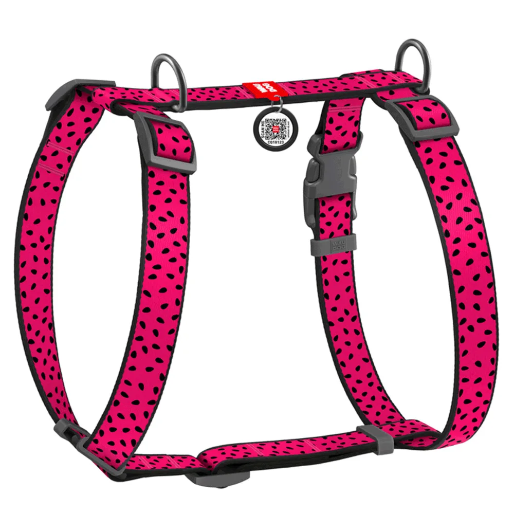 Шлея для собак анатомічна H-подібна WAUDOG Nylon з QR паспортом, малюнок Кавун S А 30-40 см, В 30-50 см,, ширина 15 мм
