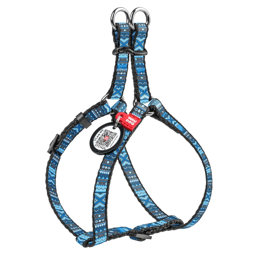 Шлея для собак WAUDOG Nylon з QR паспортом, малюнок Етно синій XS 28-40 см/10 мм