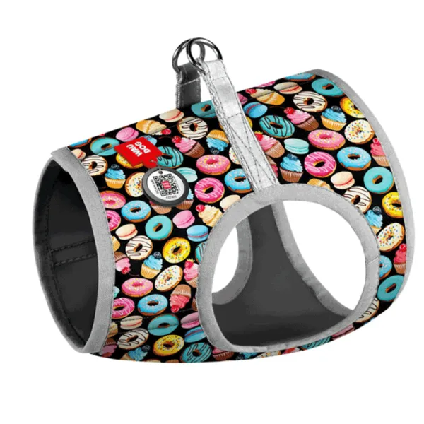 Шлея для собак м'яка WAUDOG Clothes з QR паспортом, малюнок Пончики S2 В: 46-50 см, С: 43-45 см