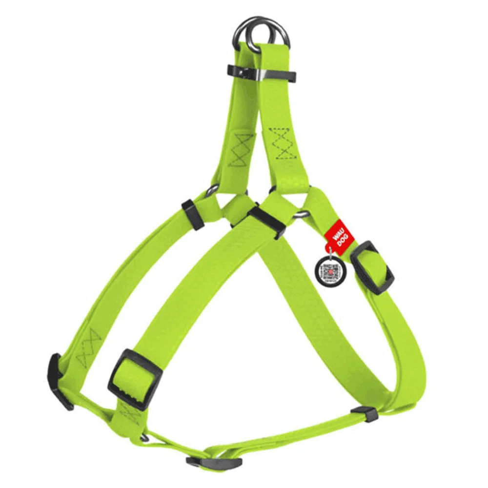Шлея для собак водостійка WAUDOG Waterproof з QR паспортом металева пряжка-фастекс 40-55 см/15 мм (салатовий)