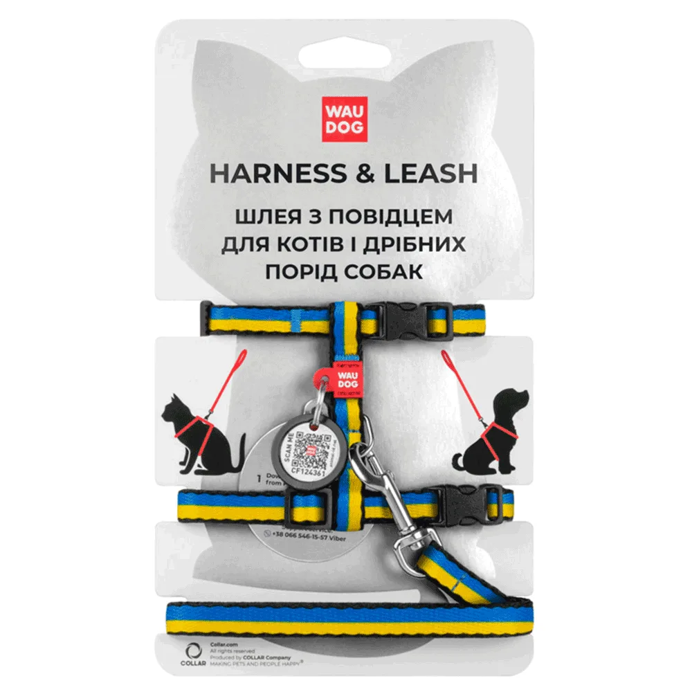 Шлей з повідцем Waudog Nylon для котів "Colors of freedom" з QR паспортом нейлон/пластик, розмір XS, 20-30/25-40 см