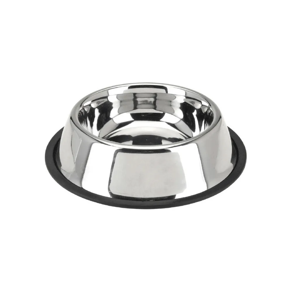 Оберіть для свого улюбленця миску SWI з гумовим обідком. Миска виготовлена зі стійкої до бактерій нержавіючої сталі, що гарантує її довговічність і безпеку для вихованця. Миску легко мити. Гумовий обідок робить миску нековзкою, а спеціальна форма не дозволяє їй перевертатися.