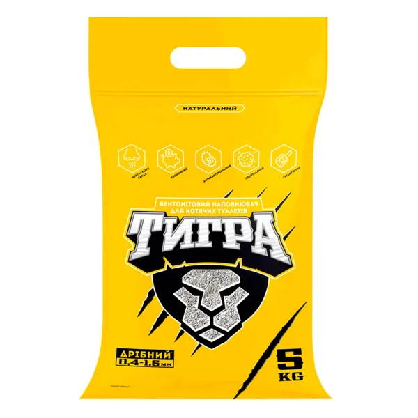 Тигра Бентонітовий наповнювач для котячих туалетів, дрібна гранула, 5 кг