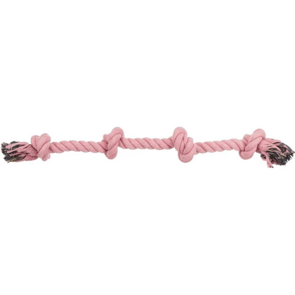 Кожний турботливий господар бажає, щоб його тваринка була щасливою і постійно розвивалась. Виробник Trixie повністю згоден з таким положенням справ, а тому пропонує свою розробку Іграшка для собак Trixie Канат плетений з вузлами 54 см (текстиль, кольори в асортименті), здатну розвивати вашого улюбленця та дарувати йому гарний настрій