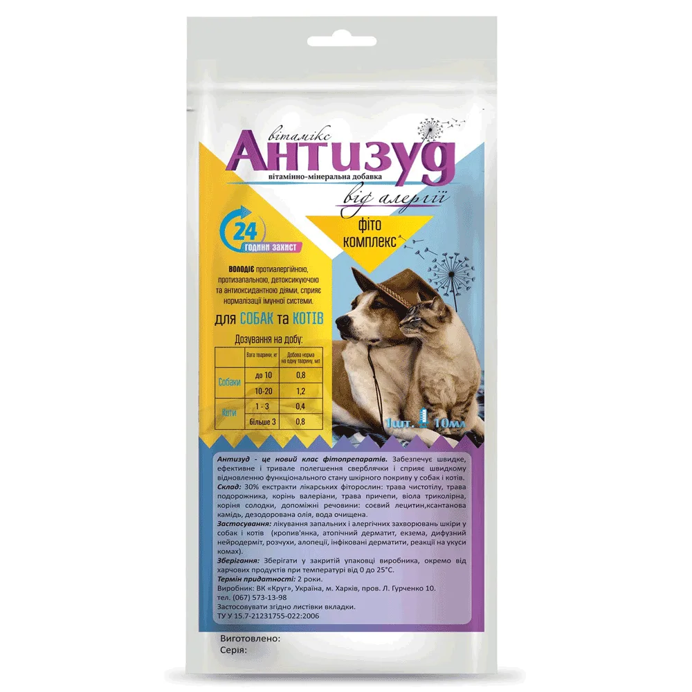 Вітамінно-мінеральна добавка від алергії Антизуд для собак та котів до 20 кг, 10 мл