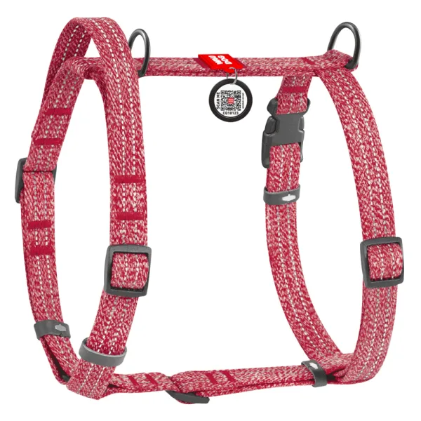 WAUDOG Re-cotton Шлея для собак анатомічна Н-подібна з QR-паспортом, бавовна, розмір М, Ш 20 мм, A 43-60 см, B 50-80 см, червоний
