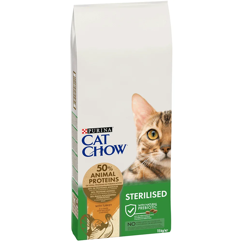 Cat Chow Sterilized Сухой корм для стерилизованных кошек, с индейкой, 15 кг