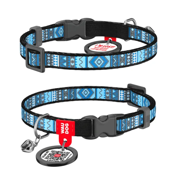 Нашийник для котів WAUDOG Design з QR паспортом і малюнком Етно синій XS 20-30 см/10 мм