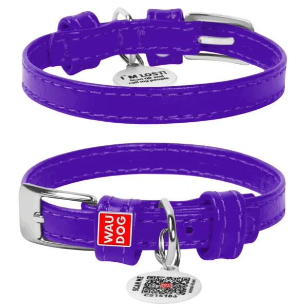 Нашийник для собак шкіра WAUDOG Glamour з QR паспортом без прикрас 19-25 см/9 мм (фіолетовий)