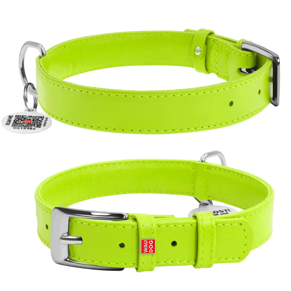 Нашийник для собак шкіра WAUDOG Glamour з QR паспортом без прикрас 38-49 см/25 мм (салатовий)