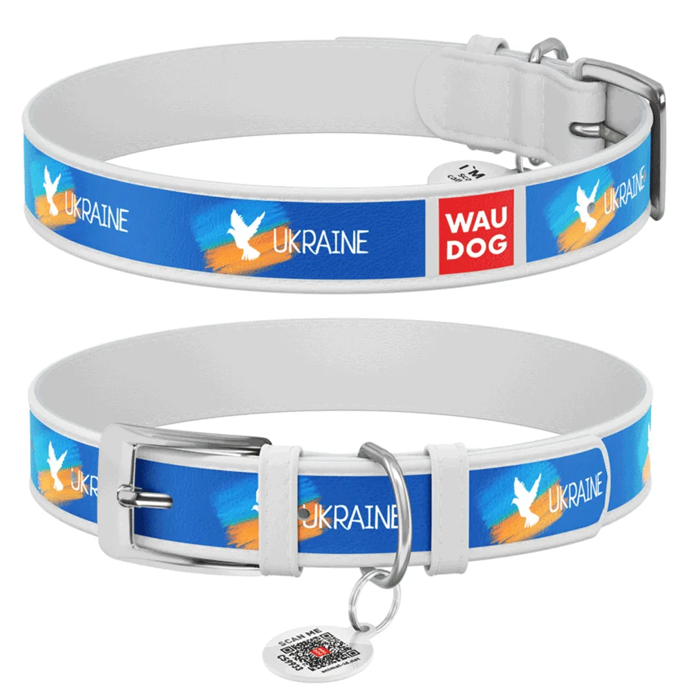 Нашийник для собак шкіряний WAUDOG Design Прапор L 38-49 см/25 мм (білий)