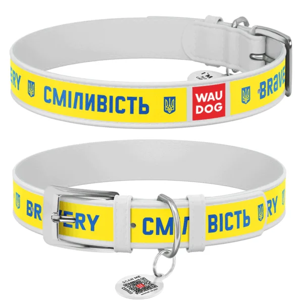 Нашийник для собак шкіряний WAUDOG Design Сміливість M 29-38 см/20 мм (білий)