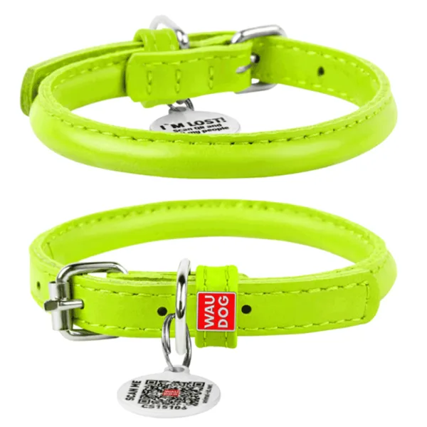 Нашийник для собак шкіряний WAUDOG Glamour з QR паспортом круглий 17-20 см/6 мм (салатовий)
