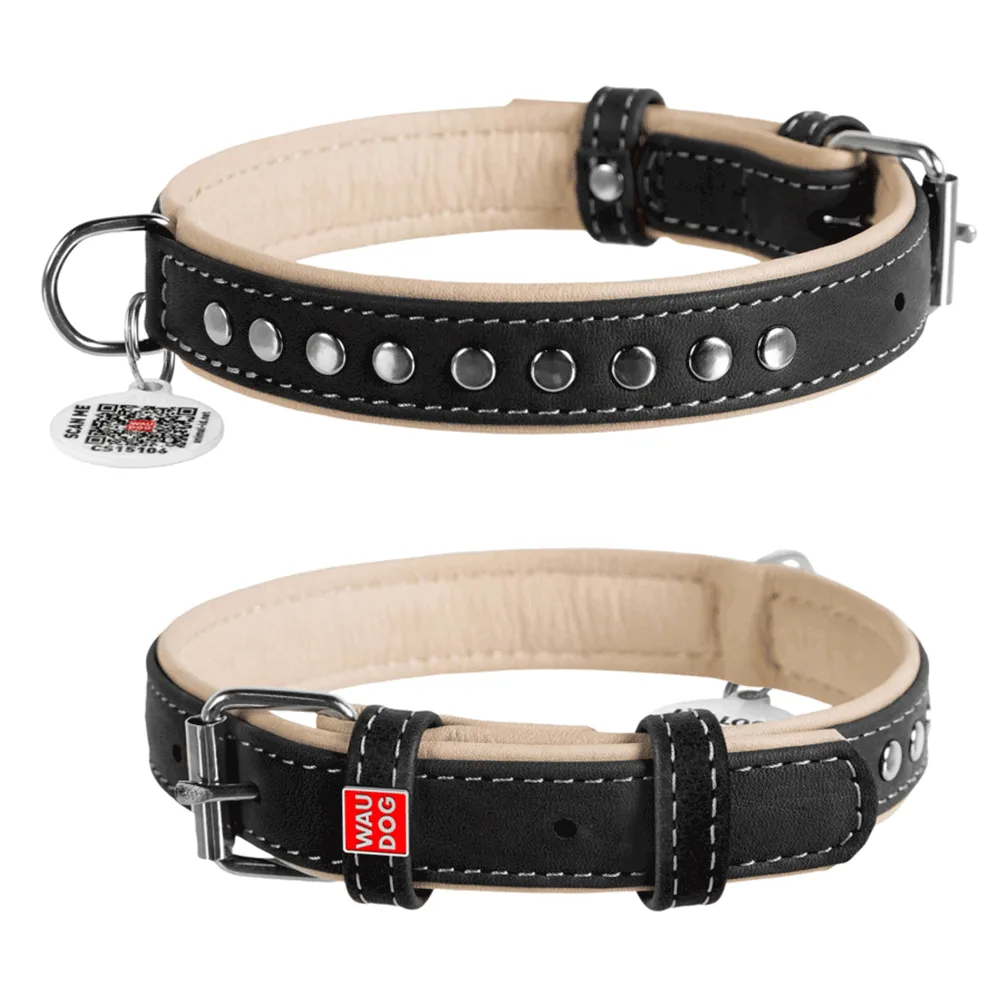 Нашийник для собак шкіряний WAUDOG Soft з QR паспортом металічні прикраси 30-39 см/20 мм