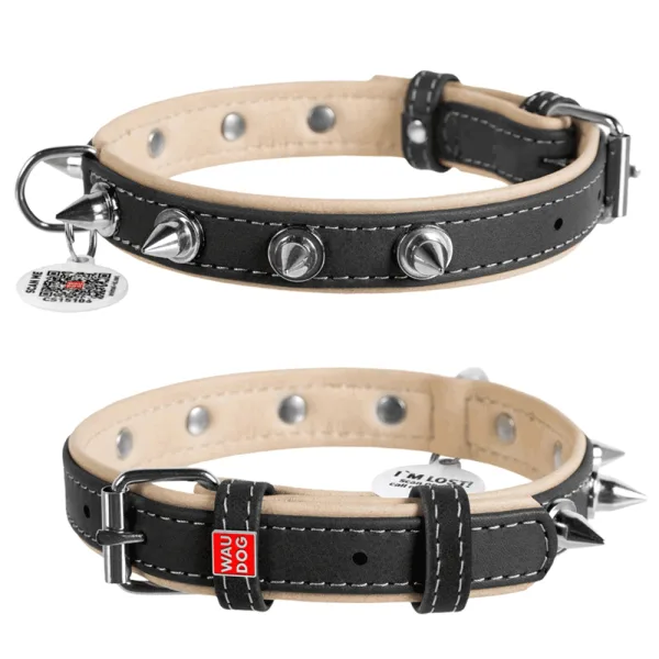 Нашийник для собак шкіряний WAUDOG Soft з шипами 38-49 см/25 мм