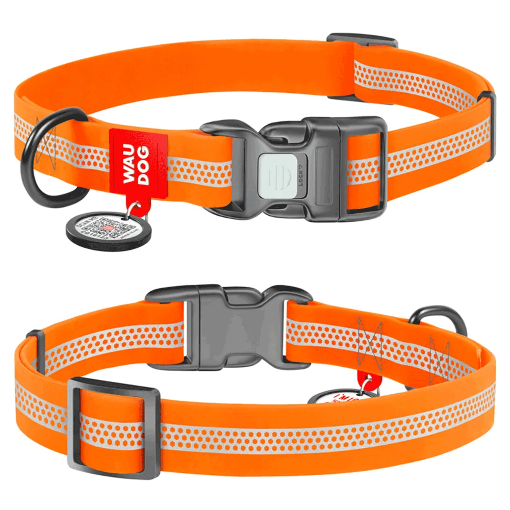 Нашийник для собак WAUDOG Waterproof з QR паспортом пластикова пряжка M 28-40 см/20 мм (помаранчев