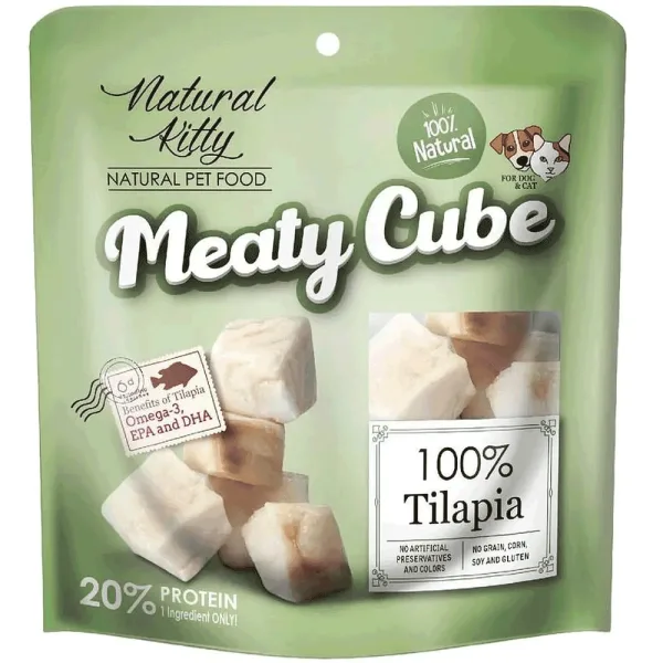 При изготовлении лакомства Natural Kitty Meaty Cube 100% Tilapia использовали только натуральную тилапию, приготовленную на пару, чтобы усилить вкус и аромат, которые обязательно понравятся как собакам, так и кошкам. Natural Kitty Meaty Cube приготовлен по специальной рецептуре так, чтобы сохранить отличный вкус и ценные питательные вещества.